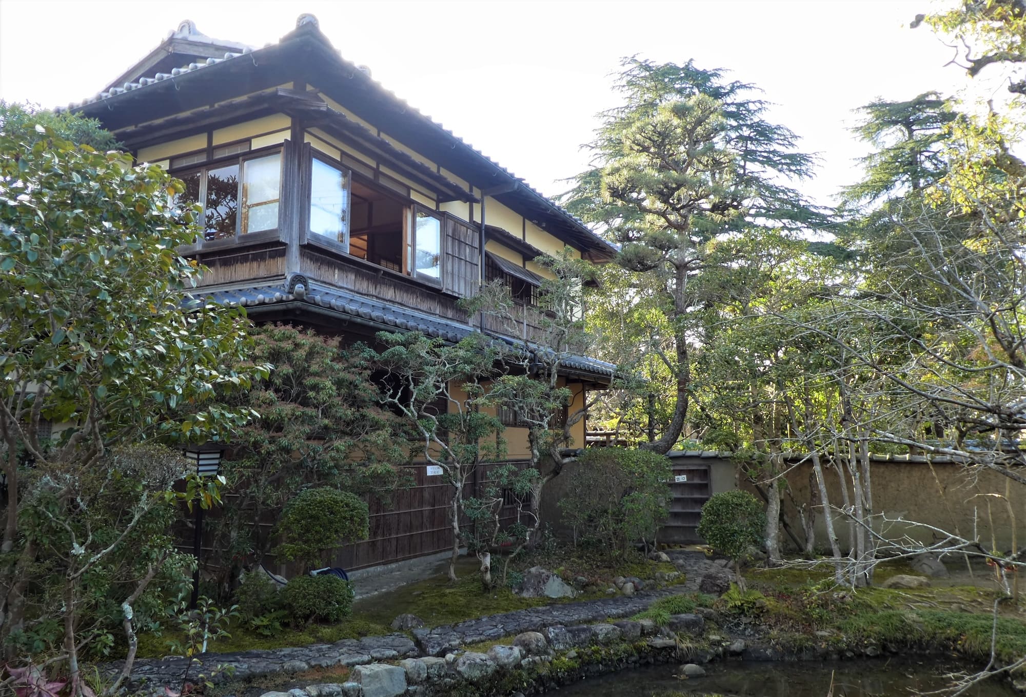 昭和4(1929)年、46歳の直哉は、春日大社の南に隣接する上高畑(かみたかばたけ)に自邸を新築します。一帯はかつて、春日の神官たちが住む「社家町(しゃけまち)」とよばれたエリア。435坪の広々とした敷地に、仕事場と住居と社交場を兼ね備えた延べ床面積134坪の邸宅は、直哉が自ら設計し、宮大工たちによって建てられました。