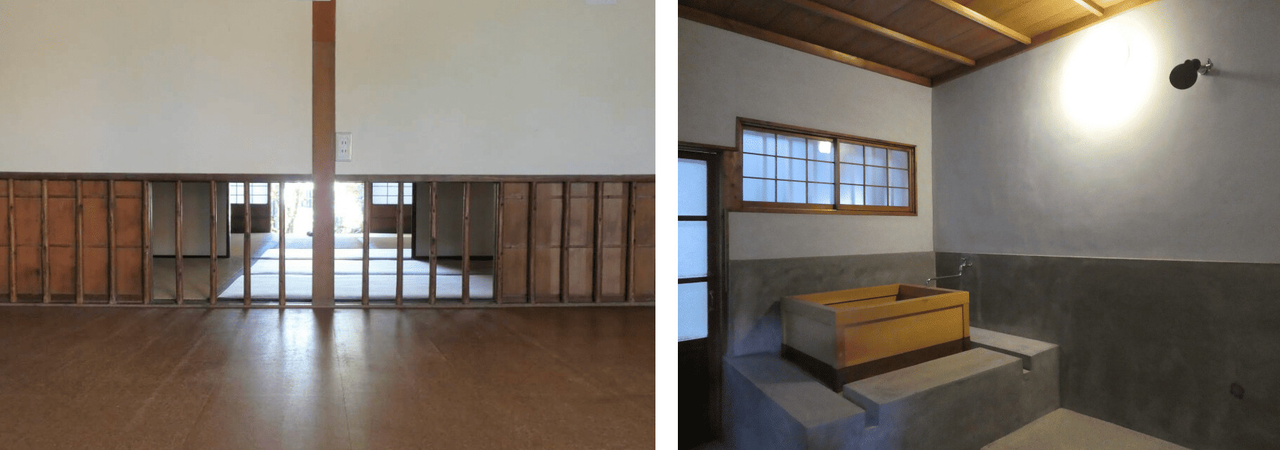 隣室から見守ることができる子ども部屋と、当時珍しいシャワーもあった浴室(復元)